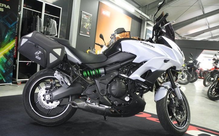 Gebrauchtfahrzeug Kawasaki Versys 650 mit ABS in weiß vom Kawasaki Vertragshändler mit 1 Jahr Händlergewährleistung * TOP-ZUSTAND, inkl. umfangreichem Zubehör: Satteltaschen Hepco&Becker, Tieferlegung 35mm mit ABE, hohes Windschild, kurzer Kennzeichenträger mit LED-Blinker vorne und hinten, Sturzpads SW-Motech, 12V-Dose, Ganganzeige, Kundendienst kostenlos neu bei Verkauf