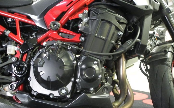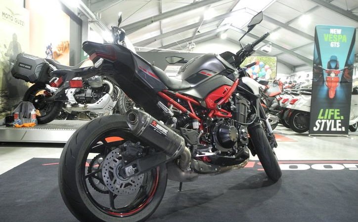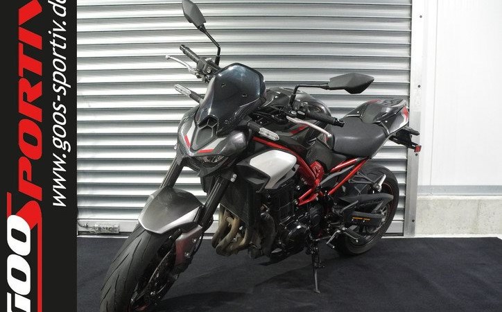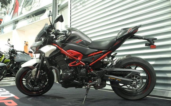 Vorführfahrzeug Kawasaki Z900 Performance Modell 2025 in grau mit rotem Rahmen vom Kawasaki Vertragshändler mit 4 Jahren Herstellergarantie ab Erstzulassung