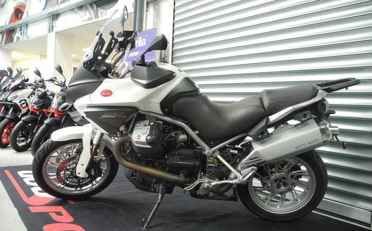 Gebrauchtfahrzeug Moto Guzzi Stelvio 1200 8V in weiß vom Moto Guzzi Vertragshändler mit PRIME Status * GUTER ZUSTAND, scheckheftgepflegt, Kundendienst kostenlos neu bei Verkauf