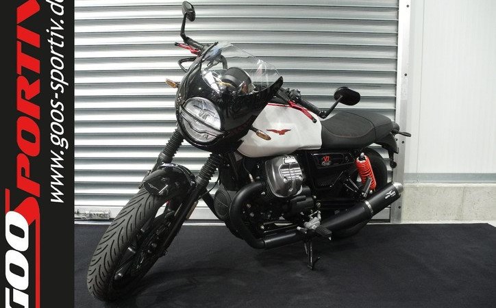 Gebrauchtfahrzeug Moto Guzzi V7 IV Stone Ten vom Moto Guzzi Vertragshändler mit PRIME Status * TOP-ZUSTAND aus 1. Hand, inkl. Cockpitverkleidung in schwarz lackiert (kann kostenfrei demontiert werden), Herstellergarantie bis 11/2026