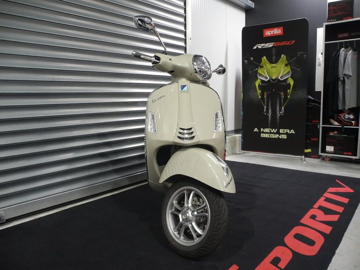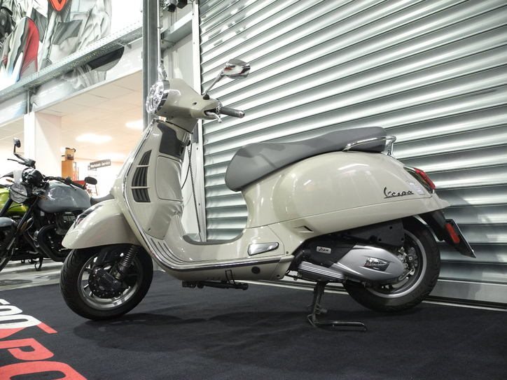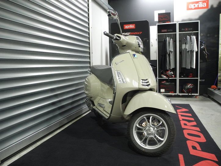 Vorführfahrzeug Vespa GTS 125 E5+ Modell 2025 in beige vom Vespa Vertragshändler mit PRIME Status