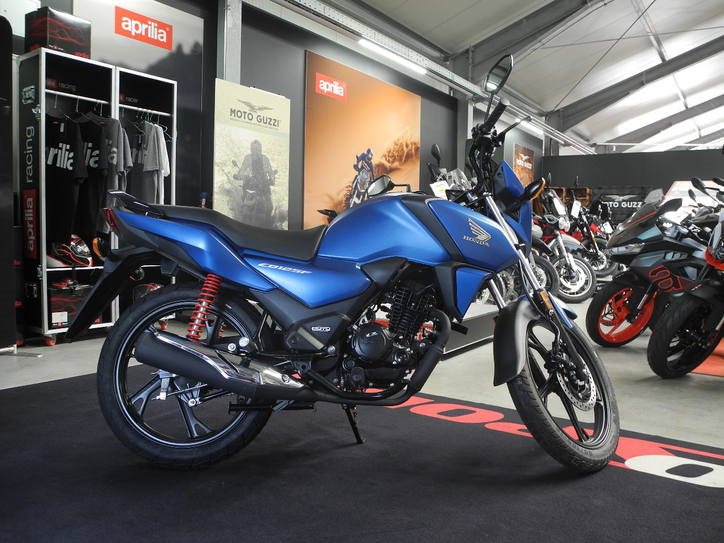 Neufahrzeug Honda CB125F Modell 2025 in schwarz und blau vom Honda Vertragshändler