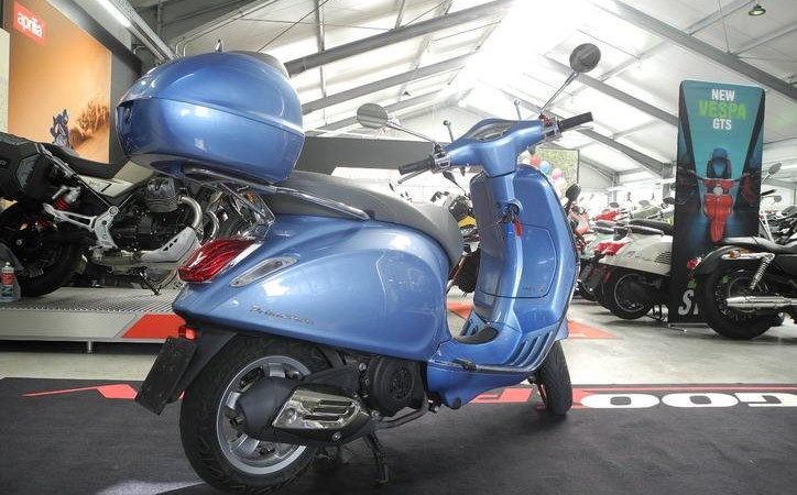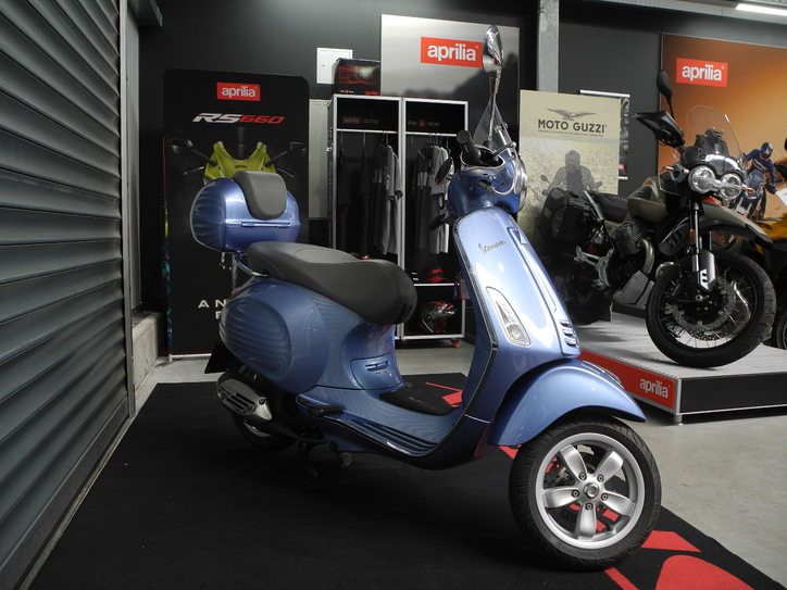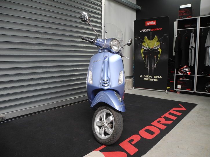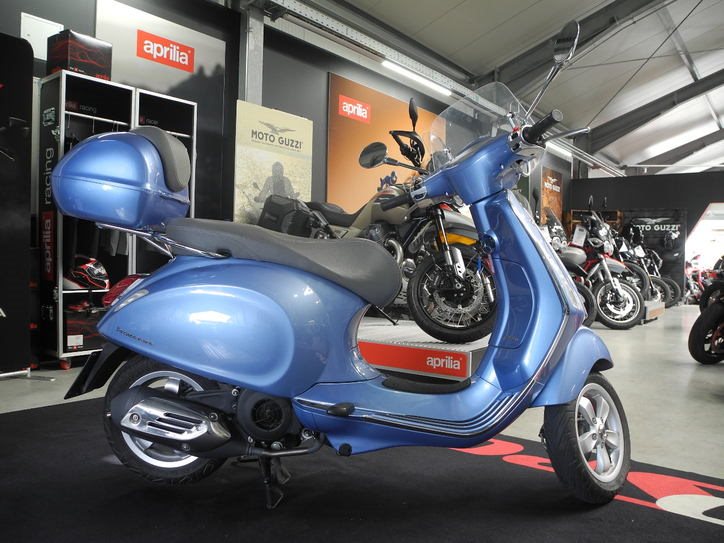 Gebrauchtfahrzeug Vespa Primavera 125 in blau vom Vespa Vertragshändler mit PRIME Status * TOP-ZUSTAND aus 1. Hand mit Original Vespa Topcase mit Rückenpolster und kleinem Windschild, Kundendienst und TÜV kostenlos neu bei Verkauf
